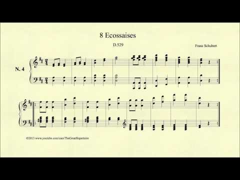 Piano sheet music for D.529, 8 Ecossaises, composed by Schubert for piano.